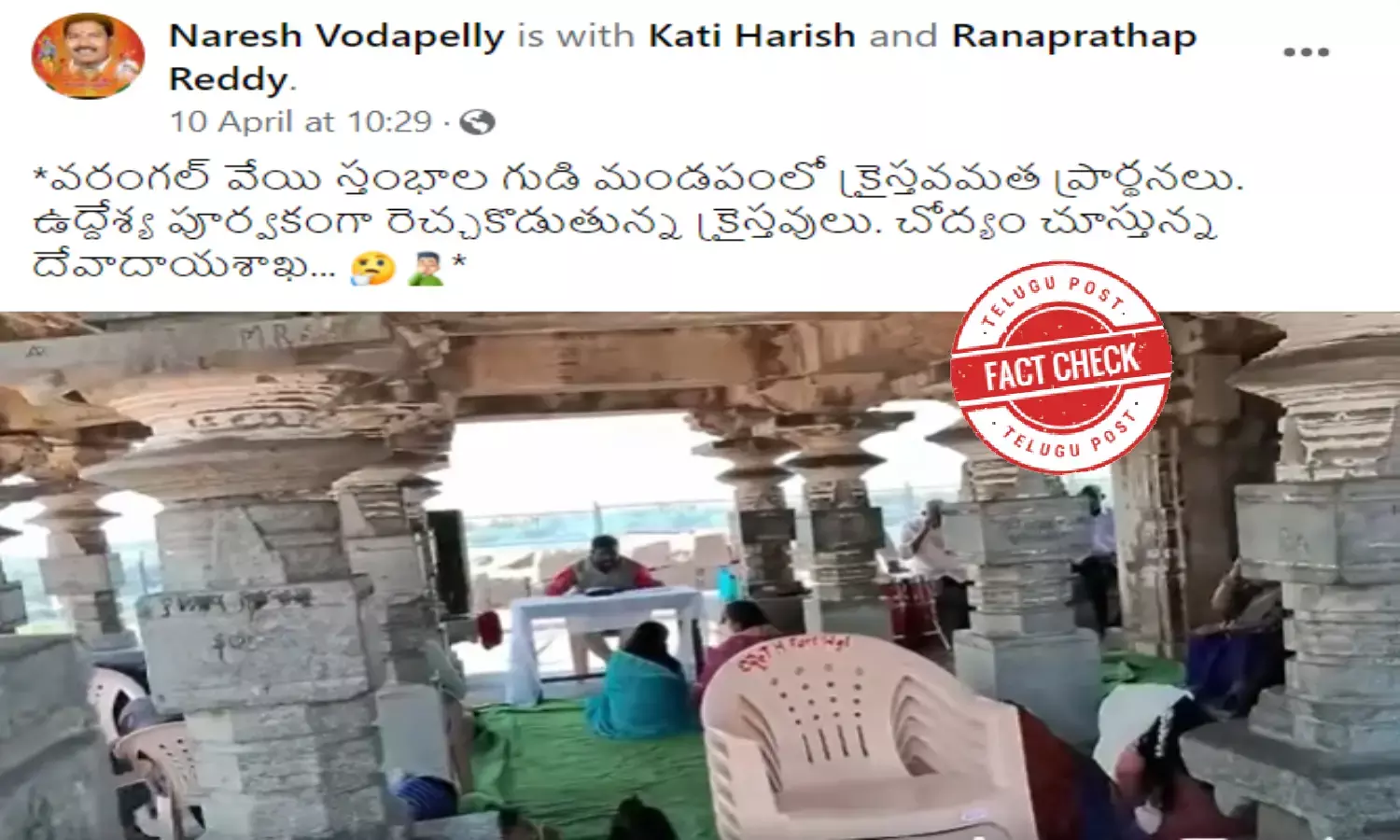 A video of a group of people praying on the premises of a temple is viral on social media with the claim that “Christians were found praying inside the Thousand Pillar Temple'' in Warangal.