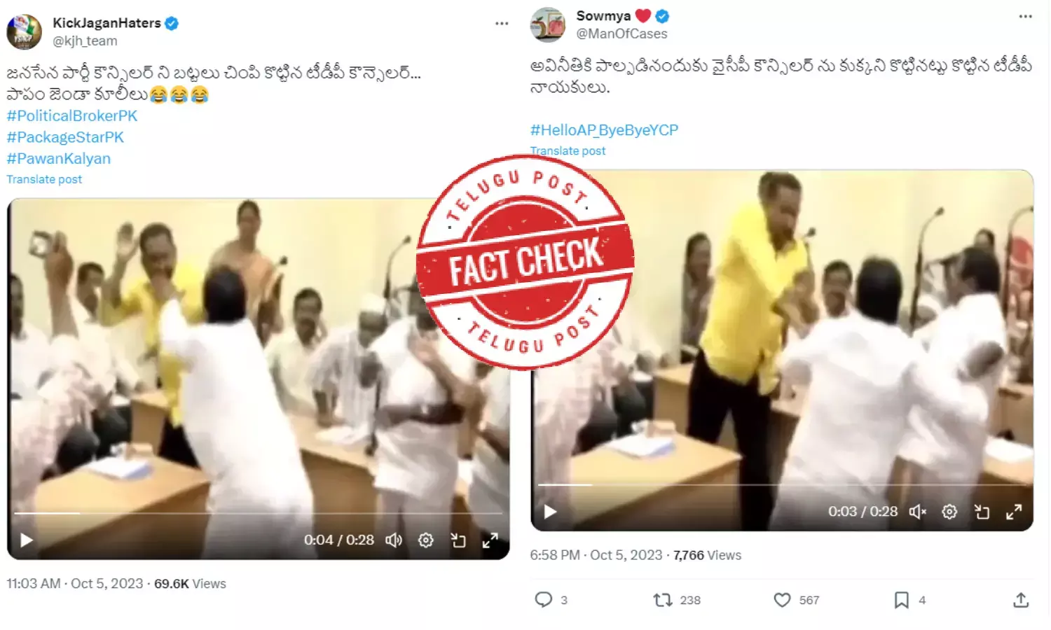 Fact Check: Video showing leaders fighting in a municipal meeting makes false claims about a scuffle between TDP leaders and Jana Sena men