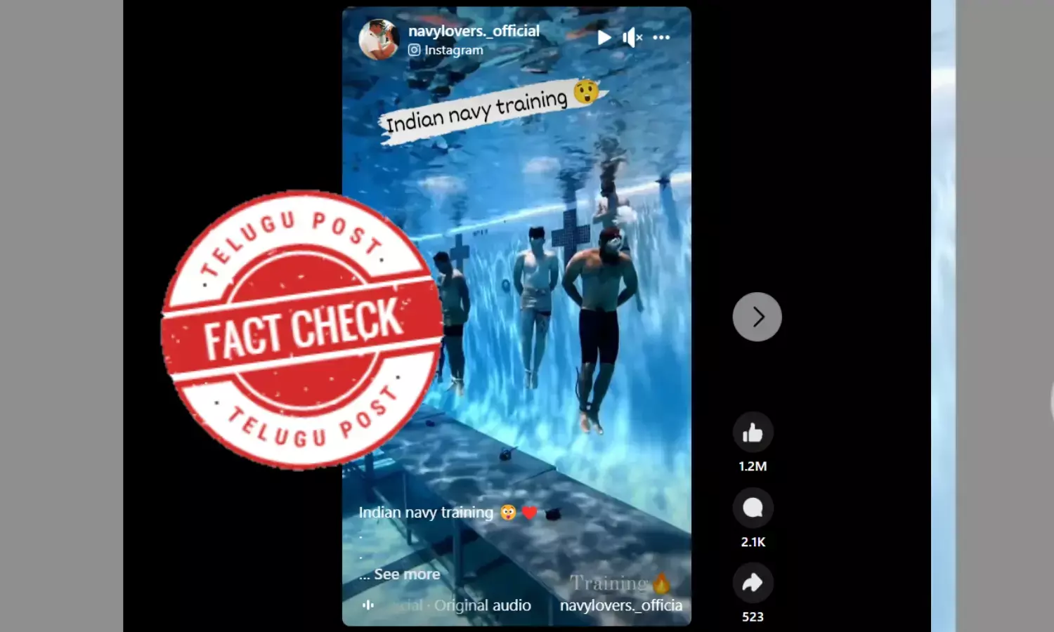 Meanwhile, a video of a few young men doing rigorous swimming exercises underwater is being shared on social media with the claim that it shows exercises done by Indian Navy soldiers. In the video, we can see the hands and legs of the persons tied up and they are trying to pick goggles with the help of their mouth. This video is shared with the caption “Indian Navy Training”