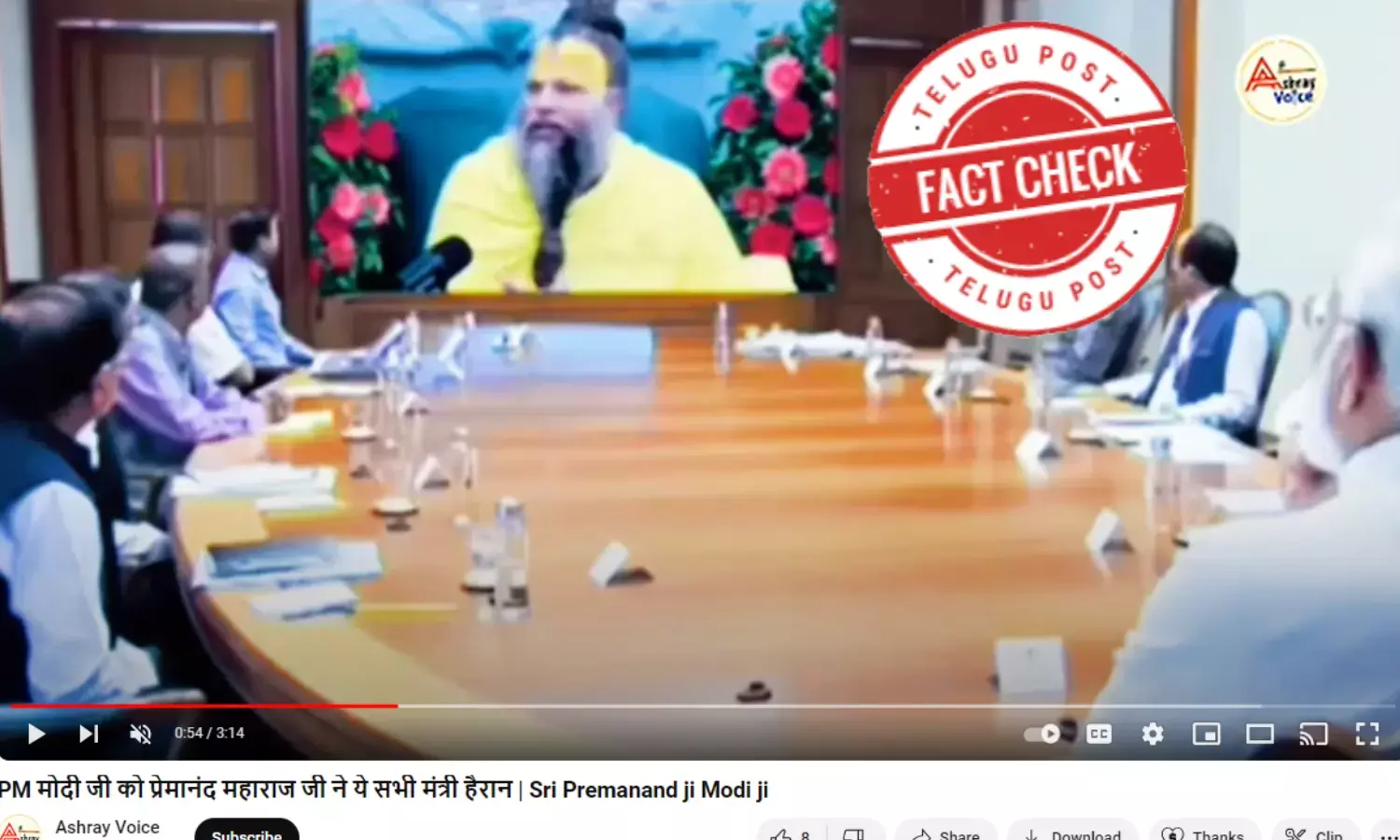 Two different videos are in circulation on YouTube with the claim that the Indian Prime Minister, along with his Cabinet ministers, is listening to discourses by Sant Premanand at a high-level meeting. In these videos, we can see the officials and ministers sitting at a table along with the Indian Prime Minister.
