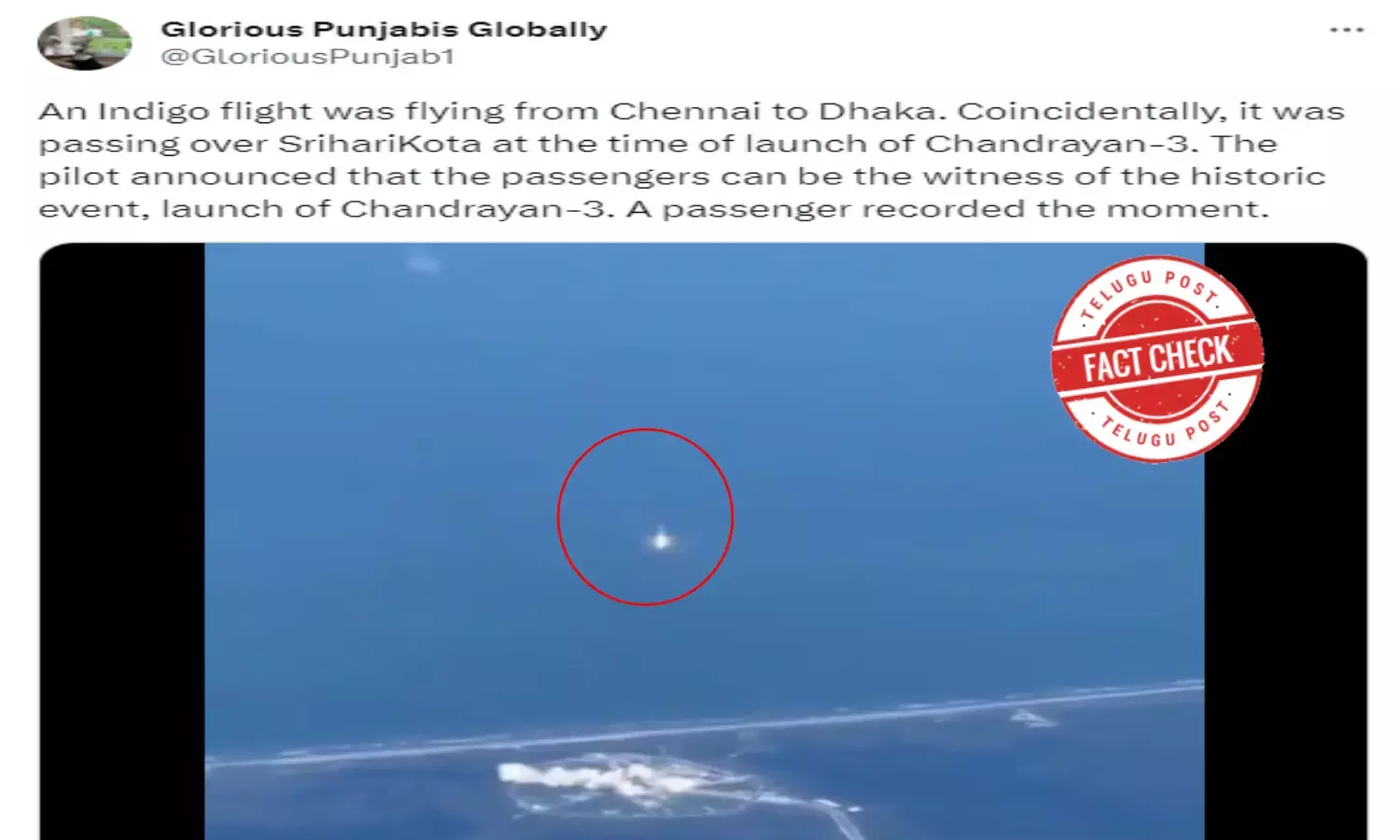 The video is being shared with the caption, “An Indigo flight was flying from Chennai to Dhaka. Coincidentally, it was passing over SrihariKota at the time of launch of Chandrayan-3. The pilot announced that the passengers can be the witness of the historic event, launch of Chandrayan-3. A passenger at a window seat recorded a video on his mobile and it is the first ever amateur video of a space craft from space.”