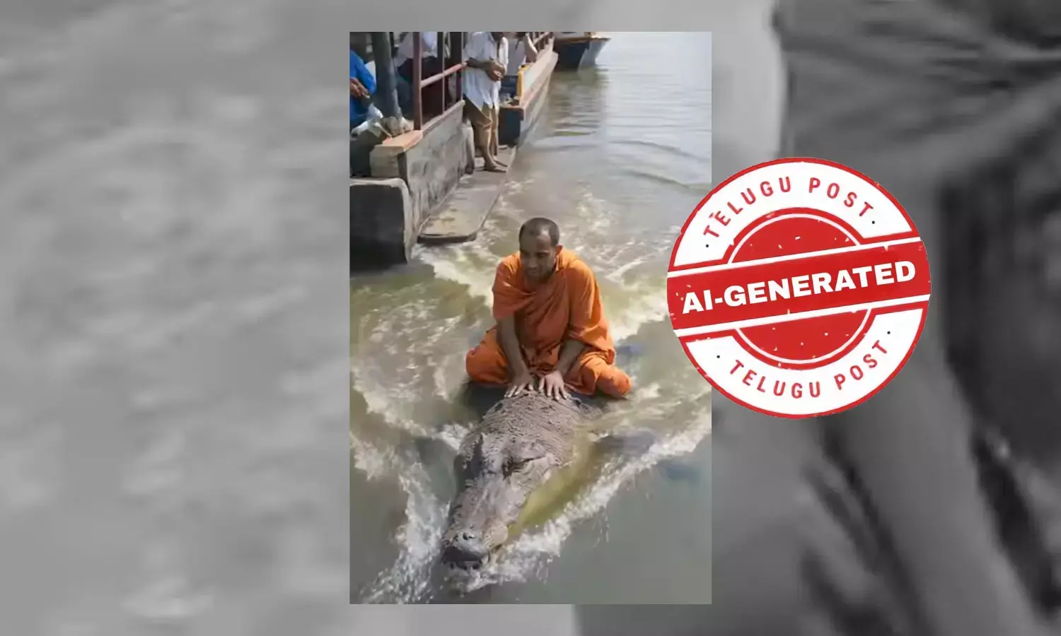 Fact Check: Viral Video of Monk Riding a Crocodile Is AI-Generated