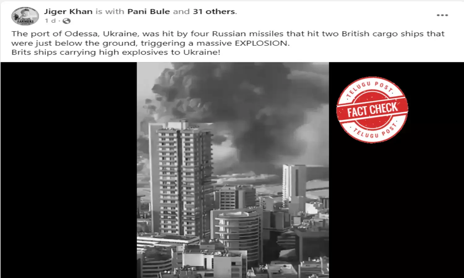 Viral video of a powerful explosion that took place at Beirut port in 2020 is shared as an explosion in Odessa port in Ukraine