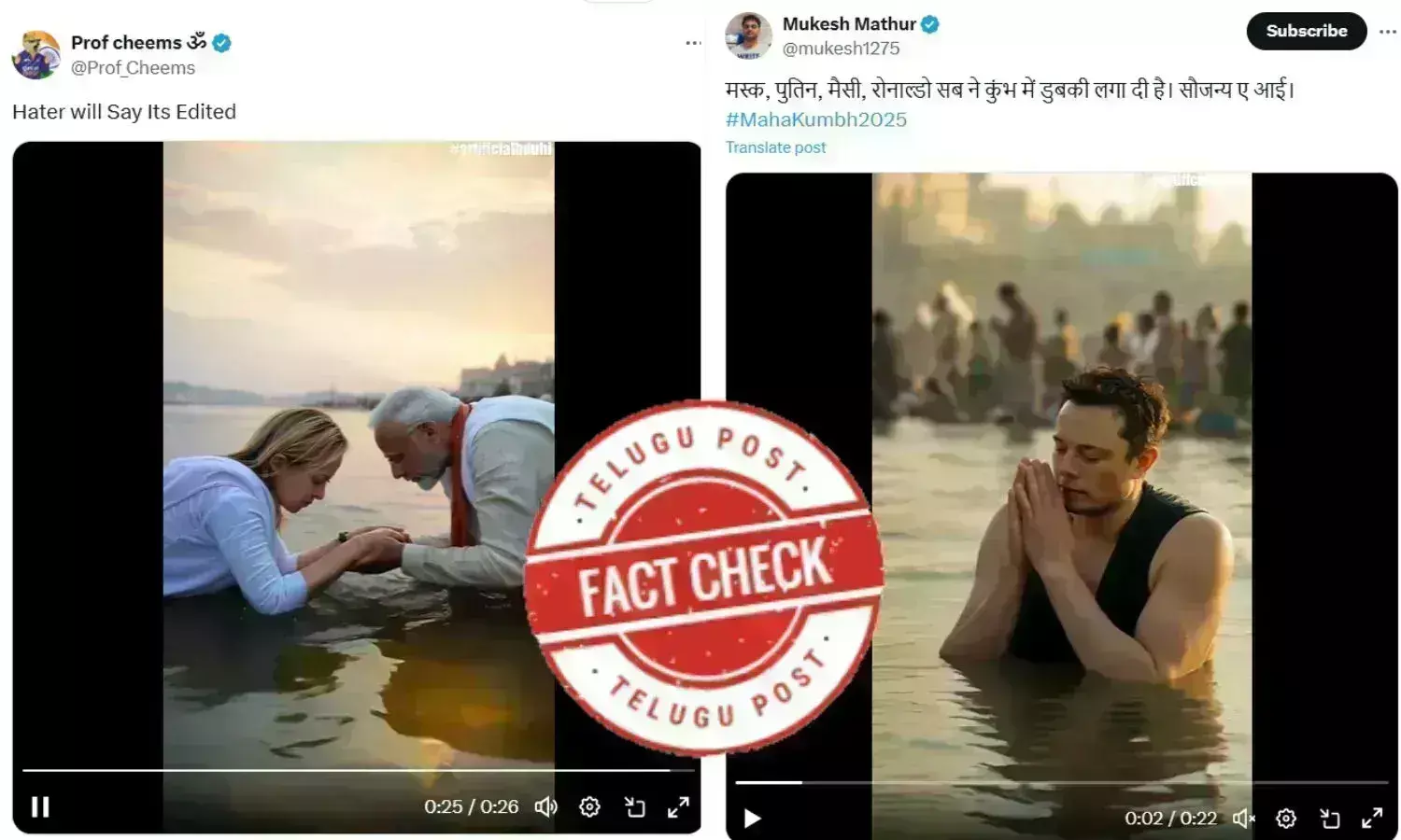 Meanwhile, a video showing many celebrities like Elon Musk, Putin, USA President Donald Trump, football players Messi, Cristiano Ronaldo, actors Will Smith, John Cena, Italian Prime Minister Giorgia Meloni and Indian Prime Minister Narendra Modi and others and taking a dip in the holy water at the Maha Kumbh Mela. We can see the celebrities taking the holy dip with other devotees in the background. The video is in circulation with the captions like ‘Is elon musk in Kumbh mela 2025?’