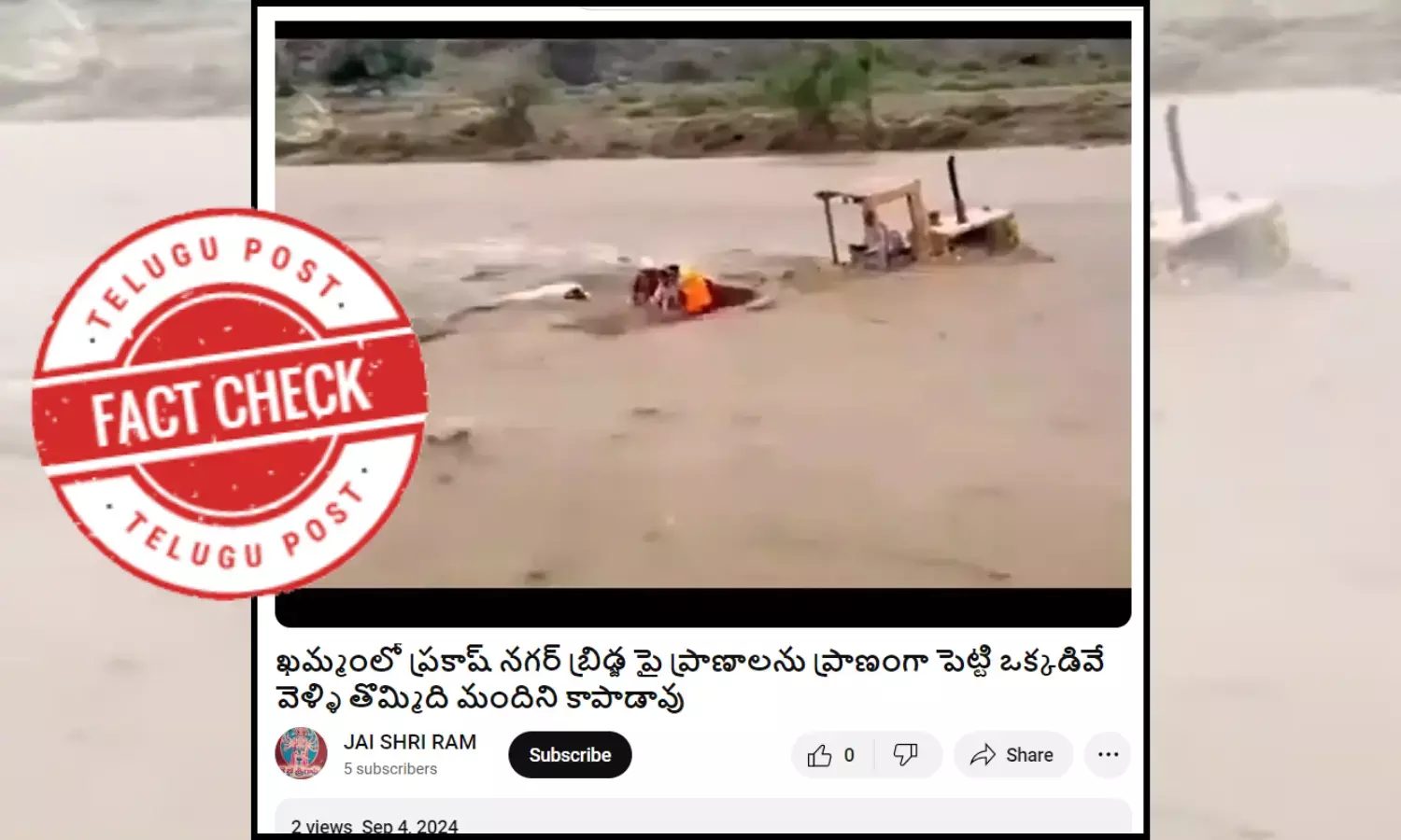 After this incident, several social media users started sharing a video of a JCB driver saving 4-5 people from the middle of a stream in floods. The video was shot in broad day light. The caption shared by some YouTube users read: “ఖమ్మంలో ప్రకాష్ నగర్ బ్రిడ్జ పై ప్రాణాలను ప్రాణంగా పెట్టి ఒక్కడివే వెళ్ళి తొమ్మిది మందిని కాపాడావు”