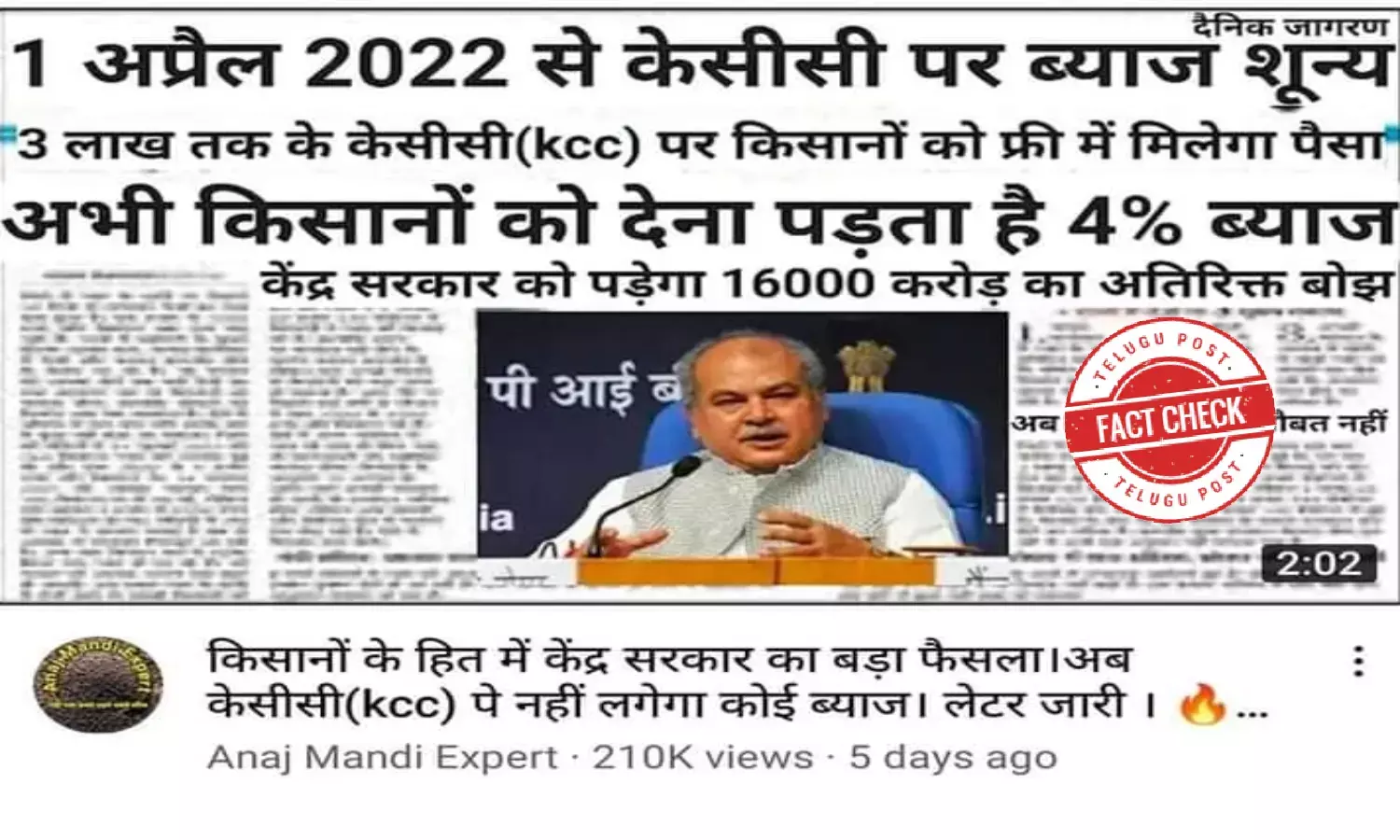 నిజమెంత: కిసాన్ క్రెడిట్ కార్డు స్కీం కింద కేంద్ర ప్రభుత్వం ఏప్రిల్ 1 నుండి సున్నా వడ్డీ రుణాలు ఇవ్వనుందా..?