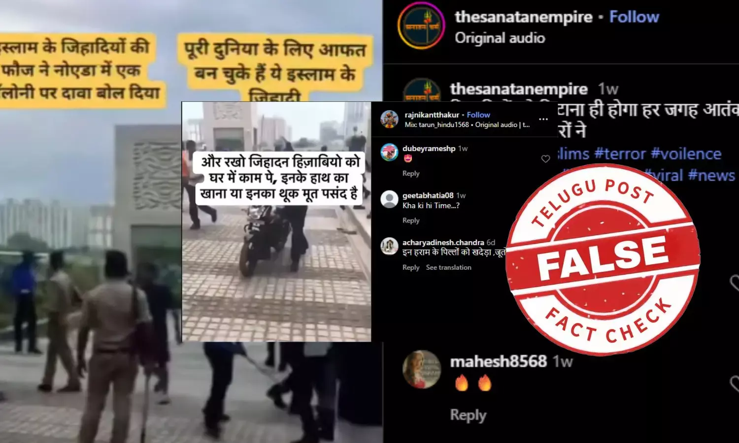 సెక్యూరిటీ గార్డులకు, కొంతమంది వ్యక్తులకు మధ్య జరిగిన ఘర్షణను చిత్రీకరించే వీడియో ఆన్లైన్లో వైరల్ అవుతూ ఉంది. ఈ ఘర్షణలో ఇరువర్గాలు రాళ్లు రువ్వుకుంటున్నట్లు కనిపిస్తోంది. ఇటీవల నోయిడాలోని ఒక నివాస సముదాయంలో ఈ ఘర్షణ జరిగిందని, దొంగతనం ఆరోపణలు ఎదుర్కొంటున్న బంగ్లాదేశ్ ముస్లిం కారణంగా ఈ ఘర్షణ జరిగిందని చెబుతున్నారు. నివాసితులు ఆ పనిమనిషిని దొంగతనం ఆరోపణల కారణంగా అదుపులోకి తీసుకున్న తర్వాత, ఆమె వర్గానికి చెందిన మహిళలు దాడి చేసి అల్లర్లు సృష్టించారని పోస్టుల్లో ఆరోపించారు.