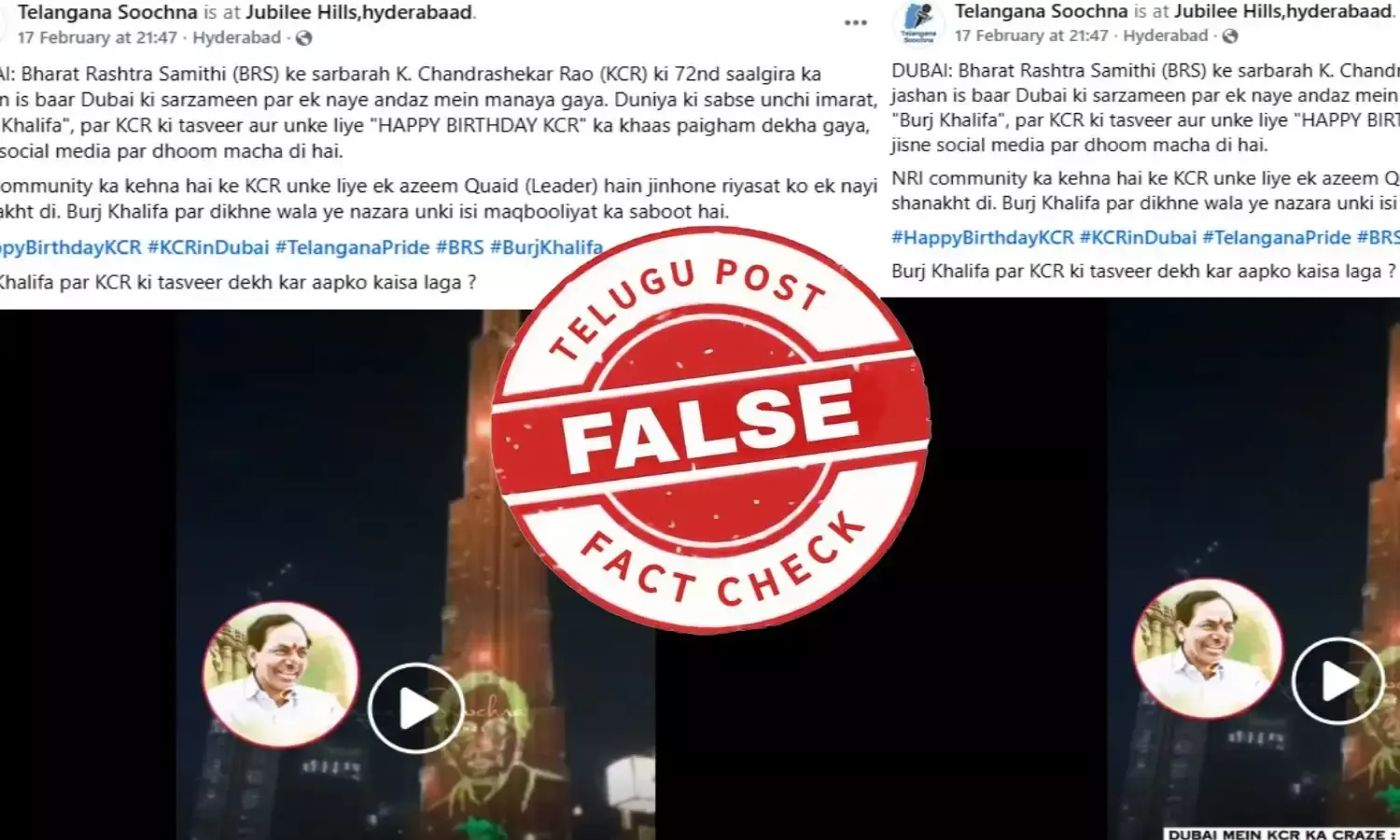ఫ్యాక్ట్ చెక్: తెలంగాణ మాజీ సీఎం కేసీఆర్ 72వ పుట్టినరోజు నాడు బుర్జ్ ఖలీఫాపై ఆయన చిత్రాన్ని డిస్ప్లే చేయలేదు