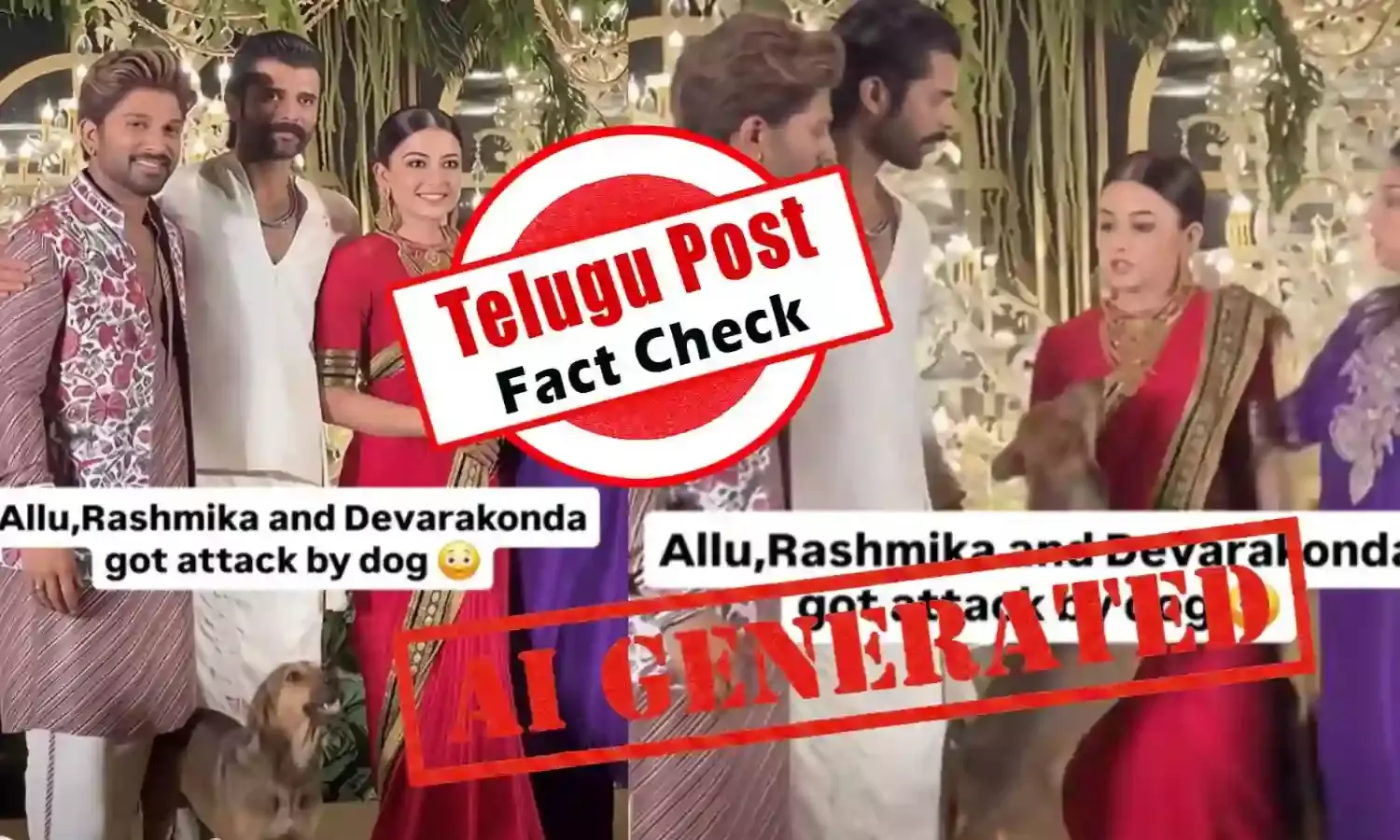 ఫ్యాక్ట్ చెక్: రష్మిక-విజయ్ దేవరకొండ వెడ్డింగ్ రిసెప్షన్ లో కుక్క దాడి చేసినట్లుగా ఏఐ వీడియోను వైరల్ చేస్తున్నారు