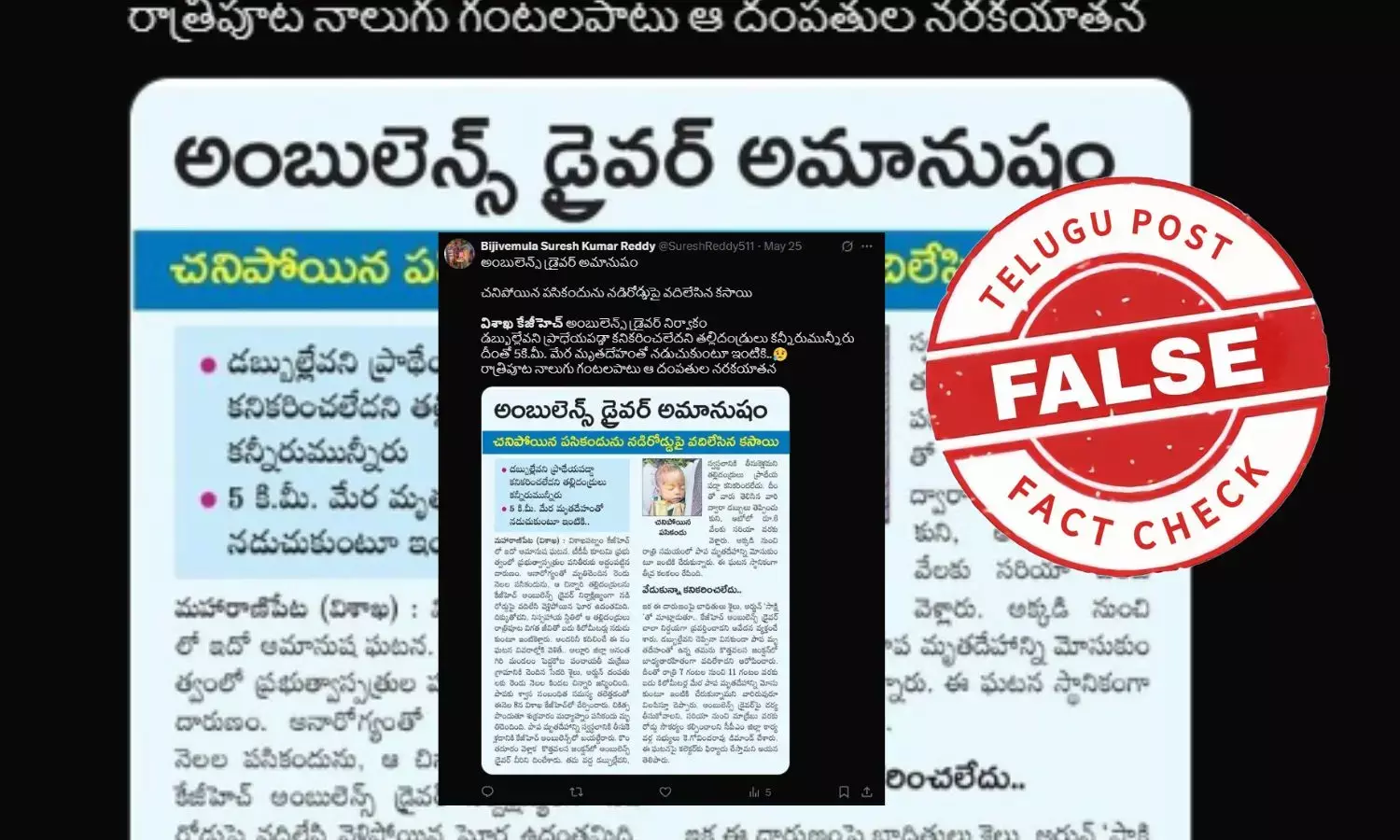 ఫ్యాక్ట్ చెక్: డబ్బులు ఇవ్వలేదని చిన్నారి మృతదేహాన్ని నడిరోడ్డుపై అంబులెన్స్ డ్రైవర్ వదిలేసాడని జరుగుతున్న ప్రచారం నిజం కాదన్న ఏపీ ప్రభుత్వ అధికారులు