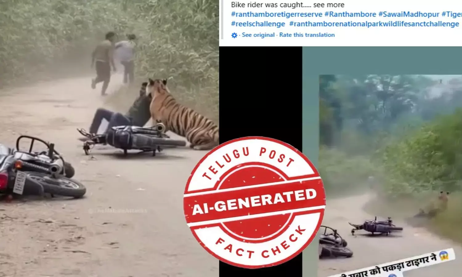ఫ్యాక్ట్ చెక్: బైక్ మీద వెళుతున్న వ్యక్తిపై పులి దాడి చేస్తున్న వీడియో నిజమైనది కాదు. ఏఐ ద్వారా సృష్టించారు
