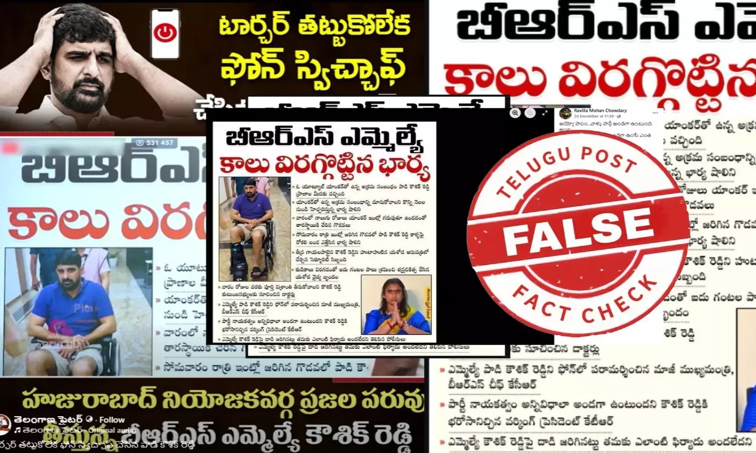 అయితే ఎమ్మెల్యే పాడి కౌశిక్ రెడ్డి కాలును ఆయన భార్య విరగ్గొట్టిందంటూ కొన్ని పోస్టులు సోషల్ మీడియాలో వైరల్ అవుతున్నాయి.