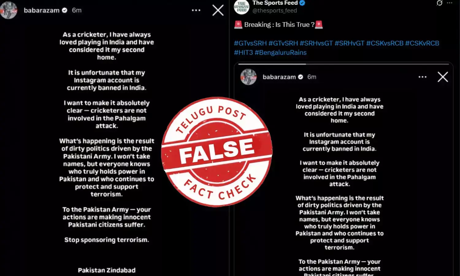ఫ్యాక్ట్ చెక్: పహల్గామ్ ఉగ్రదాడి వెనుక పాకిస్థాన్ ఆర్మీ ఉందంటూ క్రికెటర్ బాబర్ ఆజం తన సోషల్ మీడియా ఖాతాలో వెల్లడించాడు
