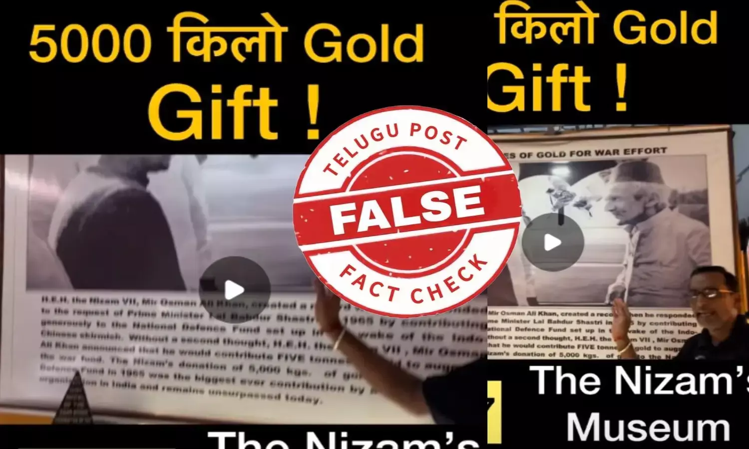 వైరల్ అవుతున్న వాదనలో ఎలాంటి నిజం లేదు. 5000 కేజీల బంగారాన్ని నిజాం భారత సైన్యానికి విరాళంగా ఇవ్వలేదు.