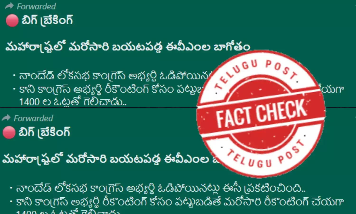 ఫ్యాక్ట్ చెక్: నాందేడ్ లోక్ సభ ఫలితాల్లో అవకతవకలు జరిగాయనే ప్రచారంలో ఎలాంటి నిజం లేదు