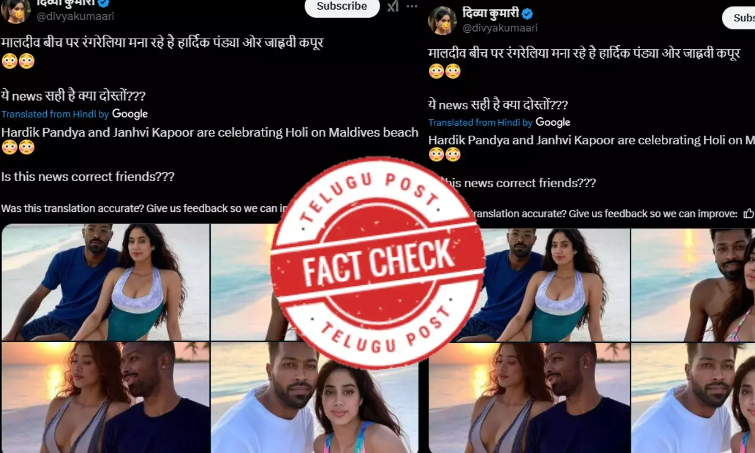 ఫ్యాక్ట్ చెక్: నటి జాన్వీ కపూర్ తో క్రికెటర్ హార్దిక్ పాండ్యా కలిసి ఉన్న ఫోటోలు ఏఐ ద్వారా సృష్టించారు