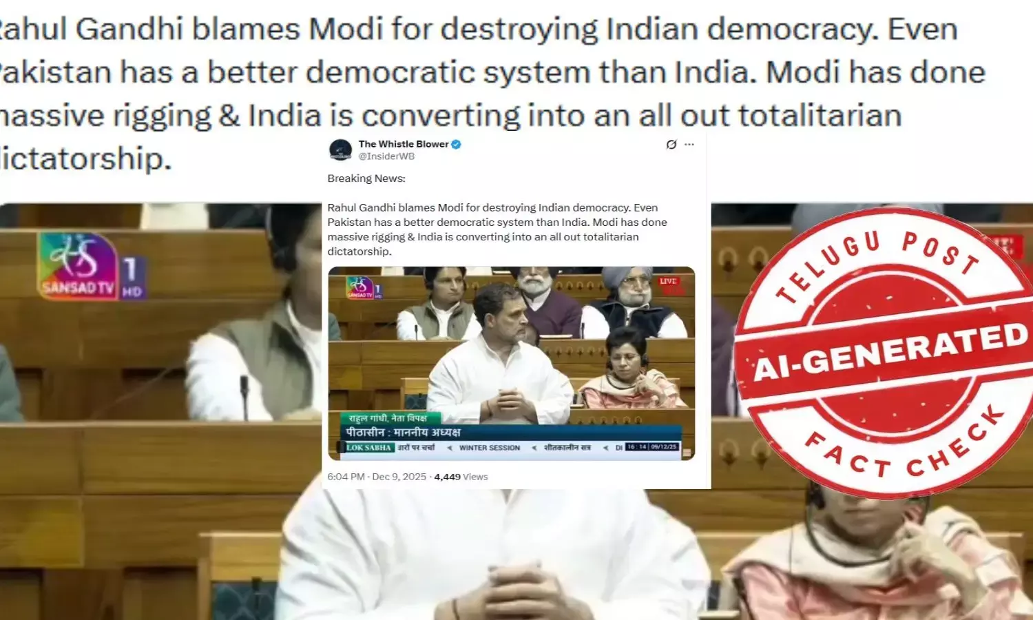 ఫ్యాక్ట్ చెక్: పాకిస్తాన్ లో ప్రజాస్వామ్యం భారతదేశంలో కంటే మెరుగ్గా ఉందని పార్లమెంట్ లో రాహుల్ గాంధీ చెప్పలేదు.