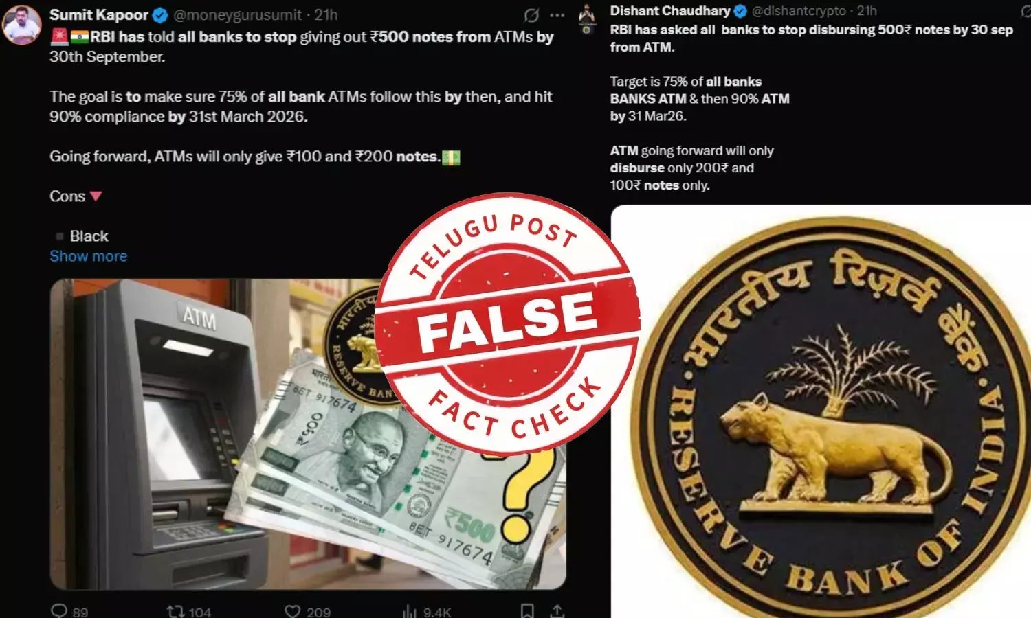 ఫ్యాక్ట్ చెకింగ్: సెప్టెంబర్ 30 నాటికి ATMల నుండి 500 నోట్లను పంపిణీ చేయడాన్ని నిలిపివేయాలని RBI బ్యాంకులకు సూచించలేదు