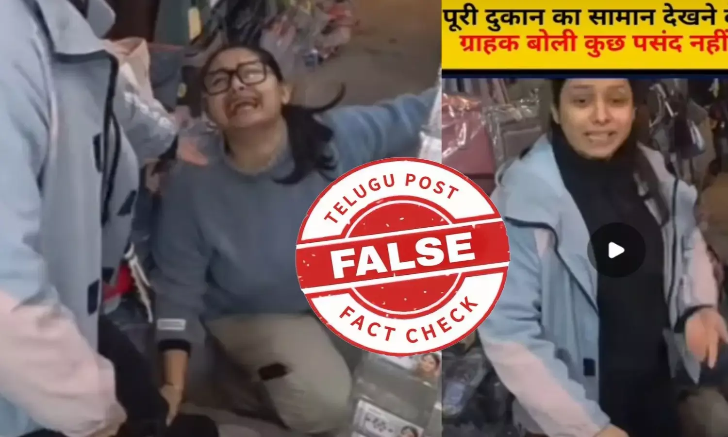 ఫ్యాక్ట్ చెకింగ్: స్క్రిప్టెడ్ వీడియోను నిజంగా షాపు యజమాని కస్టమర్ కాళ్ల మీద పడినట్లుగా ప్రచారం చేస్తున్నారు