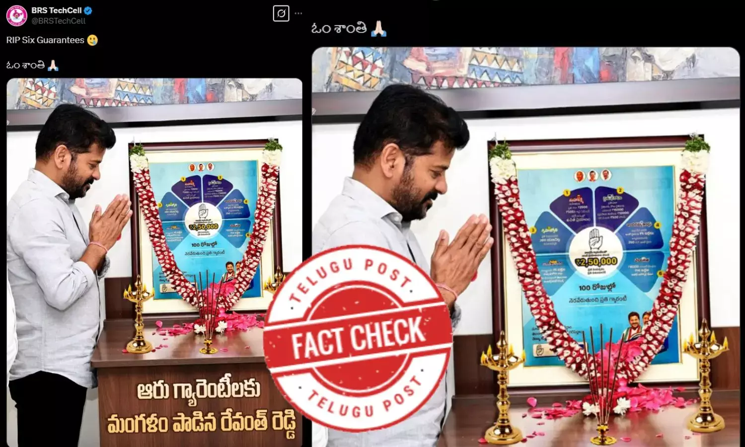 సీఎం రేవంత్ రెడ్డి ఆరు హామీలకు నివాళులు అర్పించారనే వైరల్ వాదనలో ఎలాంటి నిజం లేదు.