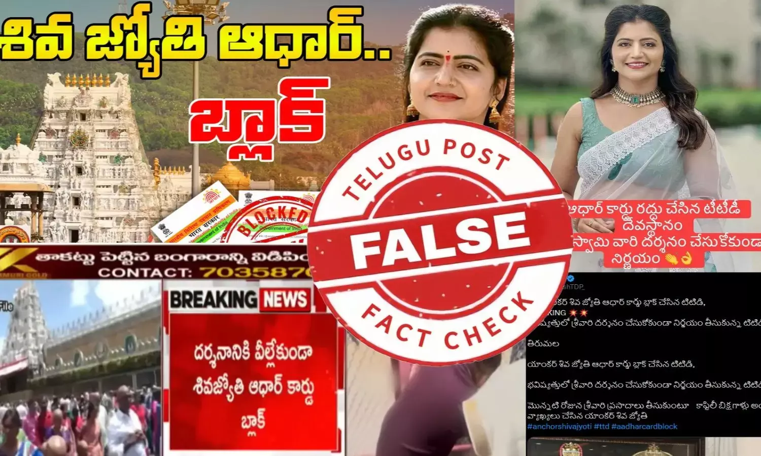 ఫ్యాక్ట్ చెక్: తెలుగు యాంకర్ శివ జ్యోతి ఆధార్ కార్డును టీటీడీ యాజమాన్యం బ్లాక్ చేయలేదు