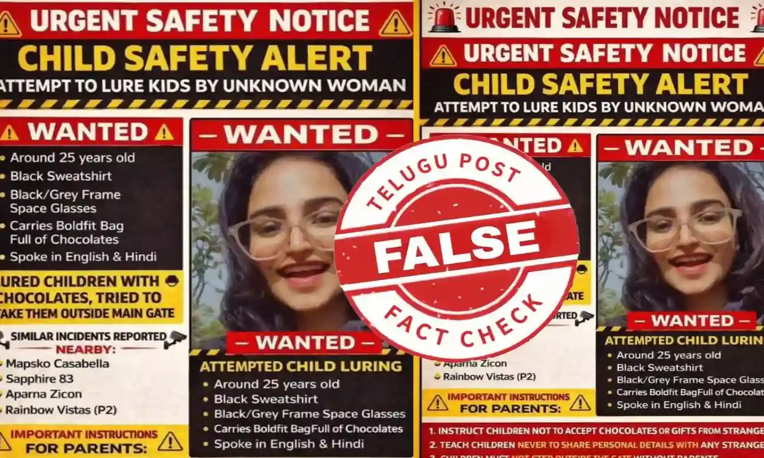 హైదరాబాద్లో వాట్సాప్ గ్రూపుల్లో చైల్డ్ కిడ్నాప్ రూమర్ విస్తృతంగా వ్యాపించింది. 20 ఏళ్ల మహిళ పిల్లలను చాక్లెట్లతో ఆకర్షిస్తూ గేటెడ్ కమ్యూనిటీల్లోకి ప్రవేశిస్తోందని సందేశాలు వైరల్ అయ్యాయి. ఏఐతో రూపొందించిన ఫోటోను జతచేసి అలర్ట్ పేరుతో ప్రచారం చేస్తున్నారని పోలీసులు తెలిపారు.