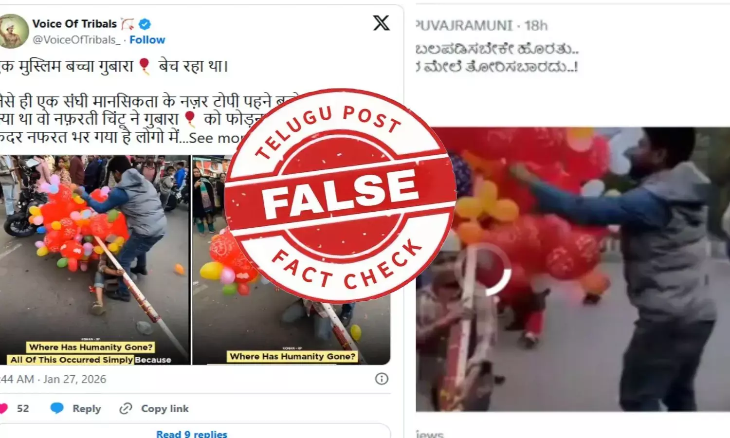 అదనపు కోణాల నుండి రికార్డు అయిన వీడియోలో బెలూన్లను పగలగొట్టిన తర్వాత, ఆ వ్యక్తి బాలుడితో మాట్లాడి, అతని వయస్సు అడుగుతాడు, బెలూన్లకు డబ్బు చెల్లిస్తాడు. పని చేయడానికి బదులుగా పాఠశాలకు వెళ్లాలని ప్రోత్సహిస్తాడు. ఈ వీడియోలను షేర్ చేసే అన్ని ఖాతాలు బంగ్లాదేశ్లో ఉన్నాయని, బంగ్లాదేశ్ నుండి స్థానిక కంటెంట్ను పోస్ట్ చేస్తున్నాయని మేము కనుగొన్నాము.