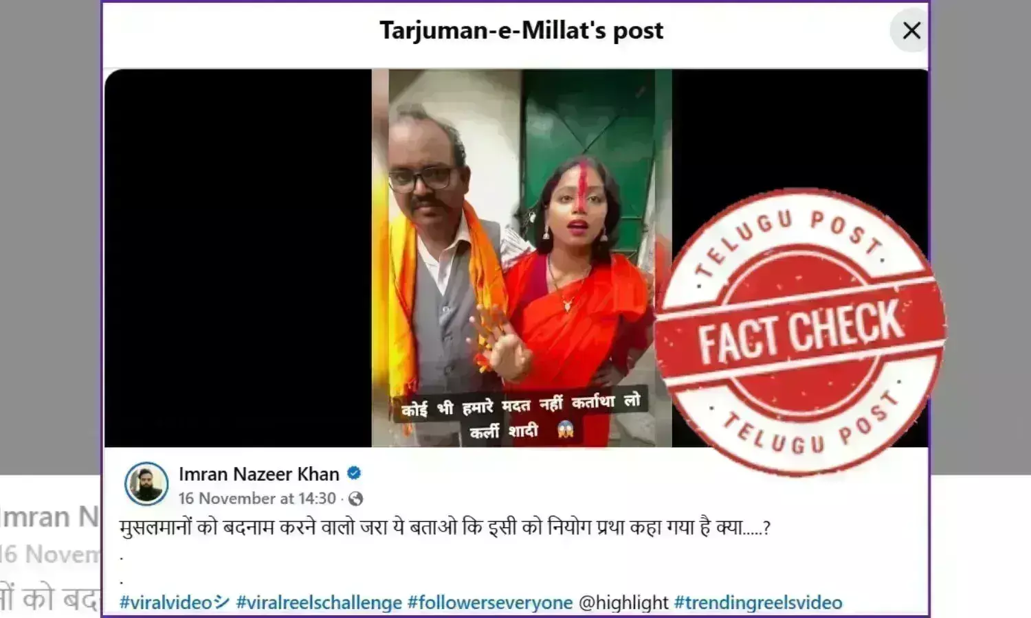 అయితే, ఓ యువతి ఓ వ్యక్తిని తన తండ్రిగా పరిచయం చేస్తూ.. అతడిని పెళ్లి చేసుకున్నట్లు చెబుతున్న వీడియో వైరల్ అవుతూ ఉంది. ఆ వీడియోలో, మహిళ తన వయస్సు 24 సంవత్సరాలు, తన తండ్రి వయసు 50 సంవత్సరాలని, తన తండ్రిని వివాహం చేసుకున్నట్లు చెప్పింది. ఈ పని చేసినందుకు ఆ వీడియోలోని వ్యక్తులు ఎలాంటి బాధను కూడా వ్యక్తం చేయరు. తాము చేసింది తప్పు కాదంటూ ఆ ఇద్దరు చెప్పడం మనం వినొచ్చు. “मुसलमानों को बदनाम करने वालो जरा ये बताओ कि इसी को नियोग प्रथा कहा गया है क्या” అనే టైటిల్ తో సోషల్ మీడియాలో వీడియోను పోస్టు చేశారు.