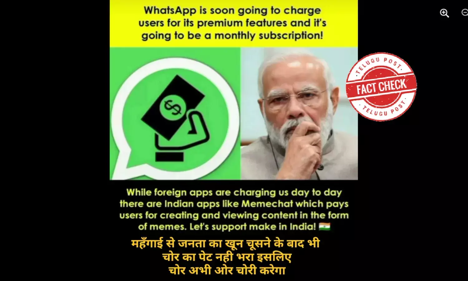ప్రీమియం ఫీచర్లను వినియోగించే వినియోగదారులతో వాట్సాప్ త్వరలో ఛార్జీలను వసూలు చేయబోతోందని సోషల్ మీడియా వినియోగదారులు ఒక పోస్ట్ను షేర్ చేస్తున్నారు.