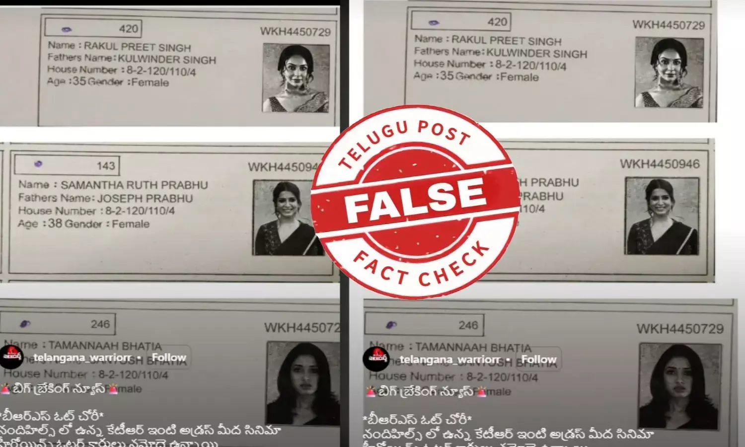ఫ్యాక్ట్ చెక్: వైరల్ అవుతున్న సమంత, రకుల్ ప్రీత్, తమన్నాల ఓటర్ ఐడీలు మార్ఫింగ్ చేసినవి