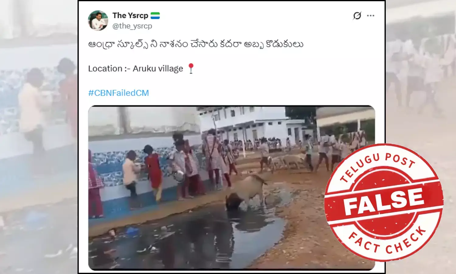 వీటన్నిటి మధ్య, కొత్త ప్రభుత్వం బాధ్యతలు స్వీకరించిన తర్వాత ఆంధ్రప్రదేశ్లోని ప్రభుత్వ పాఠశాలల్లో ప్రస్తుత పరిస్థితి ఇదని పేర్కొంటూ సోషల్ మీడియాలో ఒక వీడియో వైరల్ అవుతూ ఉంది. భోజనం తర్వాత పాఠశాల పిల్లలు తమ ప్లేట్లను కడుగుతున్నట్లు, మురికి నీరు బయటకు వస్తున్నట్లు, ఆ మురికి నీటిలో ఒక పంది తిరుగుతున్నట్లు వీడియో చూపిస్తుంది. ఈ వీడియో ఆంధ్రప్రదేశ్లోని అరకు లోయకు చెందిన పాఠశాల అనే వాదనతో వైరల్ చేస్తున్నారు
