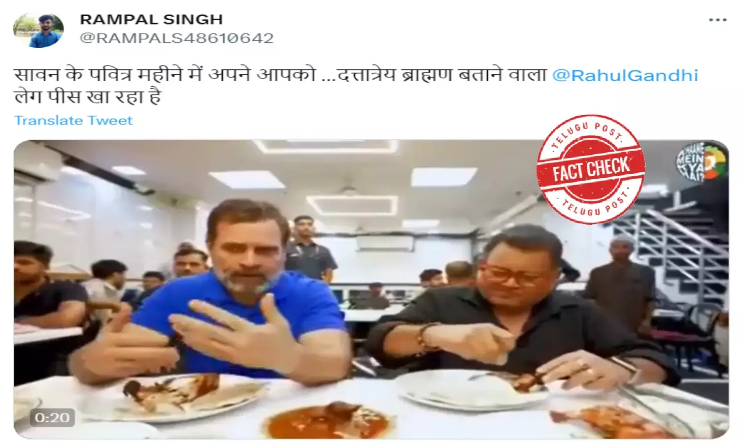 ఫ్యాక్ట్ చెక్: శ్రావణ మాసంలో రాహుల్ గాంధీ మాంసం తింటున్నాడంటూ పాత వీడియోను షేర్ చేస్తున్నారు