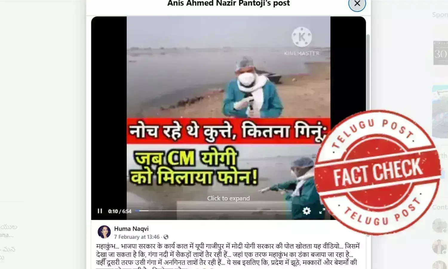 “महाकुंभ... भाजपा सरकार के कार्य काल में यूपी गाजीपुर में मोदी योगी सरकार की पोल खोलता यह वीडियो... जिसमें देखा जा सकता है कि, गंगा नदी में सैकड़ों लाशें तैर रही हैं... जहां एक तरफ महाकुंभ का डंका बजाया जा रहा है... वहीँ दूसरी तरफ उसी गंगा में अनगिनत लाशें तैर रही हैं... ये सब इसलिए कि, प्रदेश में झूठे, मक्कारों और बेशर्मों की सरकार जो चल रही है... जिम्मेदार कौन?...” ఒక రిపోర్టర్ మాట్లాడుతున్న వీడియో, గంగా నది ఒడ్డున మృతదేహాలను చూపుతున్న సుదీర్ఘ వీడియో హిందీ క్యాప్షన్తో సర్క్యులేషన్లో ఉంది. “వందలాది మృతదేహాలు గంగా నదిలో వెళుతున్నాయి.. ఓ వైపు మహాకుంభం... మరోవైపు అదే గంగలో లెక్కలేనన్ని మృత దేహాలు ఉన్నాయి... ఇదంతా సిగ్గుమాలిన ప్రభుత్వం చేస్తున్న నిర్వాకం. బాధ్యులెవరూ?" అంటూ ఆ పోస్టు వైరల్ అవుతూ ఉంది.