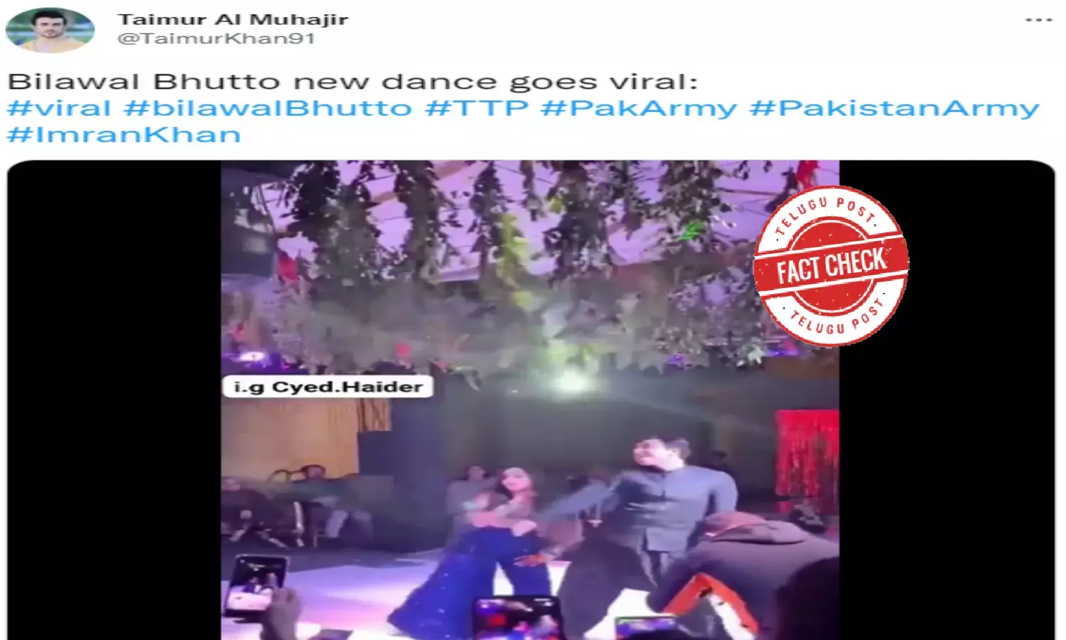 కొంతమంది వినియోగదారులు వీడియో నుండి సంగ్రహించిన చిత్రాన్ని ట్వీట్ చేశారు, అందులో ఇనాయఖాన్ అఫీషియల్ అనే ఇన్స్టాగ్రామ్ నుంచి తీసుకున్నట్టు తెలుస్తోంది. ట్వీట్పై క్యాప్షన్ ఇలా ఉంది: “తప్పుడు సమాచారాన్ని వ్యాప్తి చేయవద్దు. అతను పాకిస్తాన్ విదేశాంగ మంత్రిత్వ శాఖ బిలావల్ భుట్టో కాదు. అతను మెహ్రోజ్ బేగ్, ఇక్రా విశ్వవిద్యాలయం (కరాచీ, పాకిస్తాన్) విద్యార్థి.”