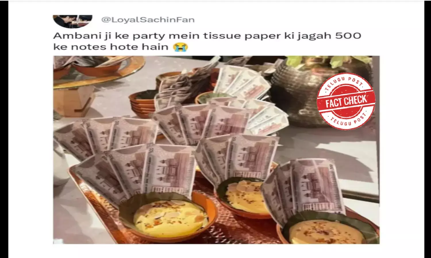 ఫ్యాక్ట్ చెక్: ముకేశ్ అంబానీ ఇచ్చిన పార్టీలో 500 రూపాయల నోటును టిష్యూ పేపర్ గా ఉపయోగించలేదు