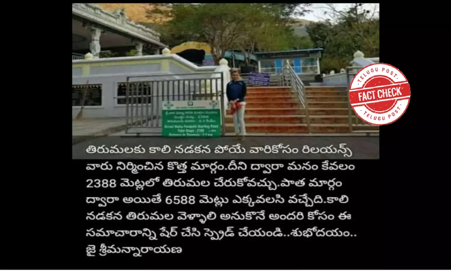 ఫ్యాక్ట్ చెక్: తిరుపతి నుండి తిరుమలకు రిలయన్స్ సంస్థ కేవలం 2388 మెట్లతో మార్గాన్ని నిర్మించలేదు.