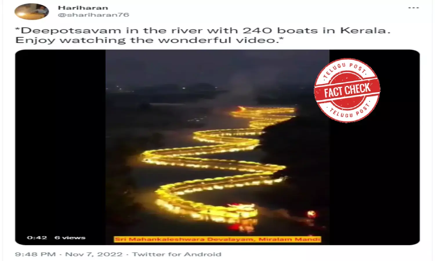 ఈ వీడియో మహాంకాళేశ్వర దేవాలయం – మీరాలం మండి ది అన్నట్టుగా టెక్స్ట్ ని మనం చూడొచ్చు. అయితే వీడియోపైన క్యాప్షన్ కేరళలోని దీపోత్సవం వేడుకలను చూపుతుందని ఉండడం గమనించవచ్చు.