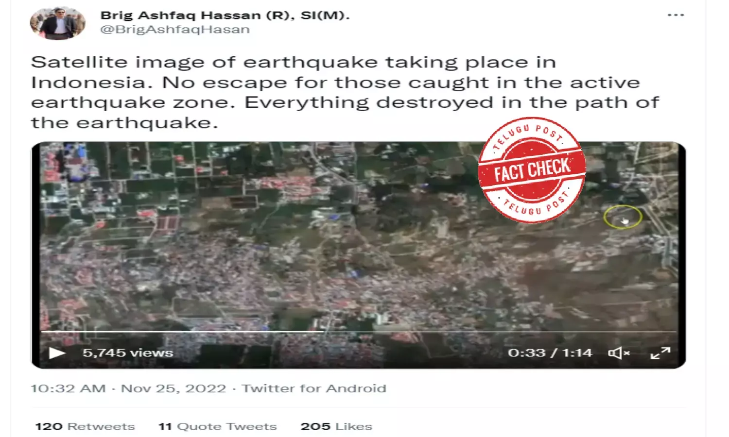 అయితే, ఇండోనేషియాలో సంభవించిన భూకంపానికి సంబంధించిన ఉపగ్రహ చిత్రాలను చూపుతుందనే వాదనతో టైమ్ లాప్స్ వీడియో ఒకటి సోషల్ మీడియాలో షేర్ అవుతోంది.