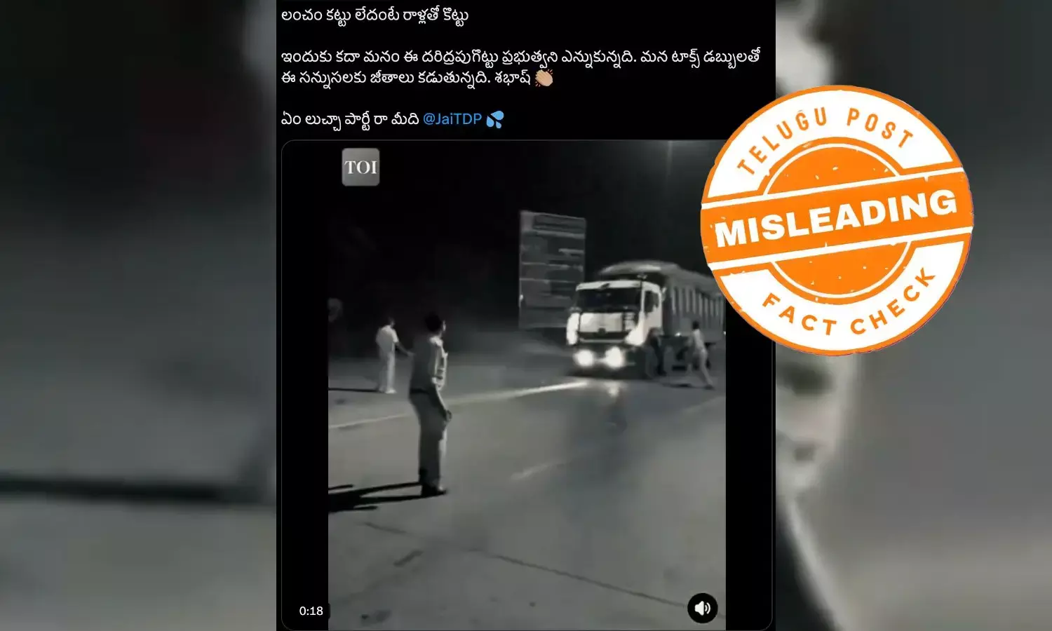 ఈ సందర్భంలో ఒక 20 సెకెన్ల వీడియో ఒకటి సామాజిక మాధ్యమాలలో వైరల్ అవుతుంది. ఈ పోస్ట్ కు శీర్షికగా, “లంచం కట్టు లేదంటే రాళ్లతో కొట్టు. ఇందుకు కదా మనం ఈ దరిద్రపుగొట్టు ప్రభుత్వని ఎన్నుకున్నది. మన టాక్స్ డబ్బులతో ఈ సన్నుసలకు జీతాలు కడుతున్నది. శభాష్,” అంటూ రాసుకొచ్చారు. పైగా, తెలుగు దేశం పార్టీ అధికారిక X అకౌంట్ ను ట్యాగ్ చేసి అసభ్యకర పదజాలంతో సంబోధించారు. ఇతర యూజర్ల కూడా ఇదే తరహా లో రాసి షేర్ చేశారు.
