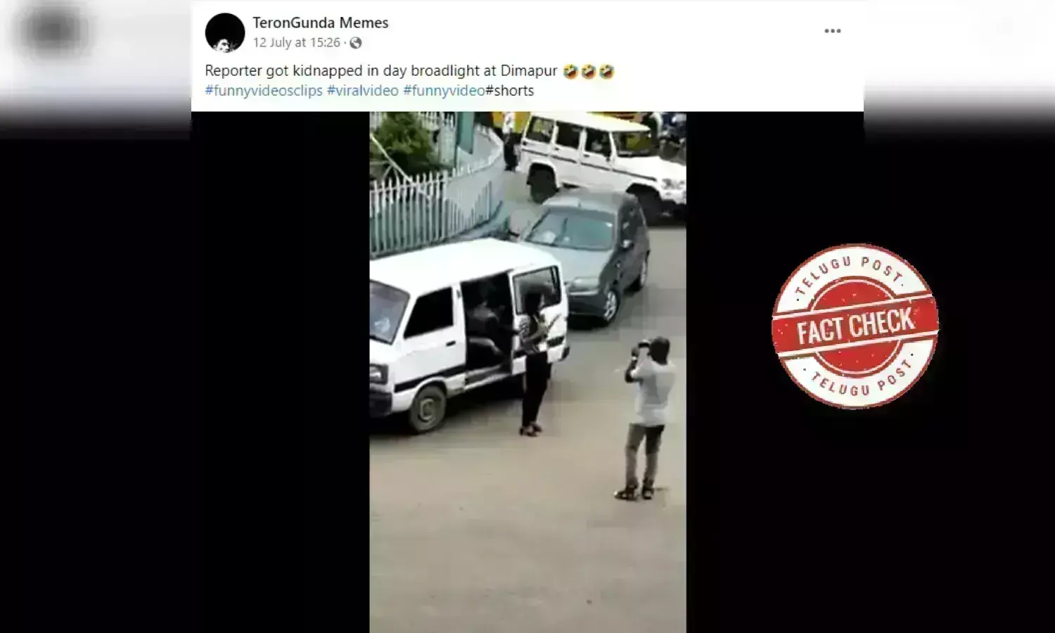 నాగాలాండ్లోని దిమాపూర్లో ఒక రిపోర్టర్ కిడ్నాప్కు చేసిన వీడియో.. సినిమాలో భాగంగా జరిగింది. ఇది నిజమైన కిడ్నాప్ సంఘటనగా తప్పుగా షేర్ చేస్తున్నారు.