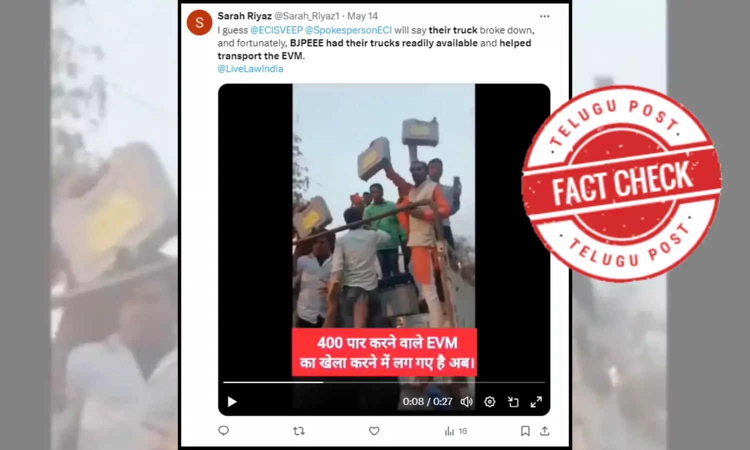 ఈవీఎం మెషీన్లను చేతిలో పట్టుకుని ట్రక్కుపైకి ఎక్కిన గుంపుకు సంబంధించిన వీడియో సోషల్ మీడియాలో వైరల్ అవుతూ ఉంది. ఎన్నికల తర్వాత ఈవీఎం యంత్రాలను బీజేపీ కార్యకర్తలు తీసుకుని వెళ్తున్నారనే వాదనతో వీడియోను వైరల్ చేస్తున్నారు