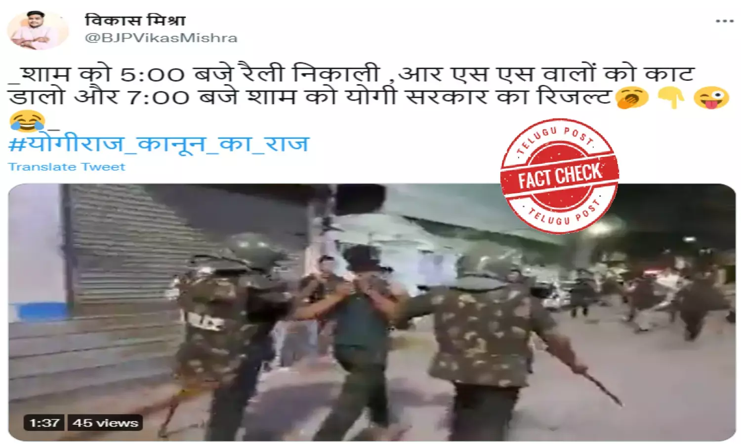 యోగి ఆదిత్యనాథ్ నేతృత్వంలోని యుపి ప్రభుత్వం ఆర్ఎస్ఎస్ వ్యతిరేక ర్యాలీ జరిగిన తర్వాత బలవంతంగా వారి ఇళ్ళలోకి వెళ్లి మరీ కస్టడీలోకి తీసుకున్నారనే కథనంతో ఒక వీడియో సోషల్ మీడియాలో ప్రచారంలో ఉంది.