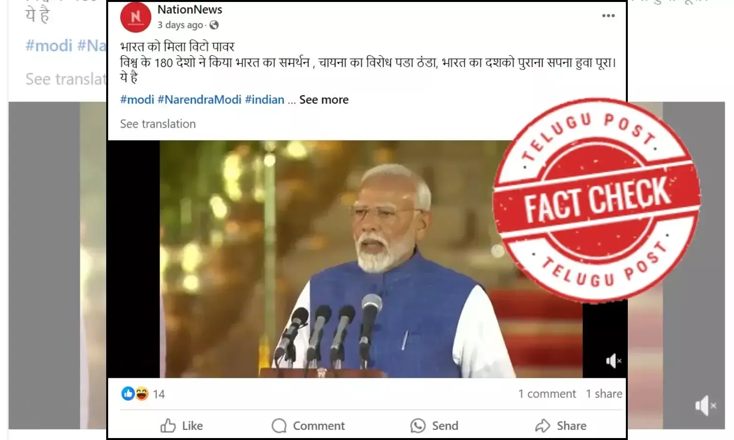 “मोदी जी को बधाई " भारत को मिला विटो पावर " विश्व के 180 देशो ने किया भारत का समर्थन , चायना का विरोध पडा ठंडा, भारत का दशको पुराना सपना हुवा पूरा। ये है - मोदी के भारत कि सुपर पावर । चमचों भूले तो नही हो ना भारत को मिल रही सदस्यता खुद न लेकर चीन को दिलवाने वाला प्रधानमंत्री कौन था जो हिंदी चीनी भाई भाई का नारा लगाकर चीन से जमीन भी हारा और युद्ध भी* @हाइलाइट PMO India ModiNama Narendra Modi Modi Giri Modi Manch అంటూ హిందీలో పోస్టును వైరల్ చేస్తున్నారు.