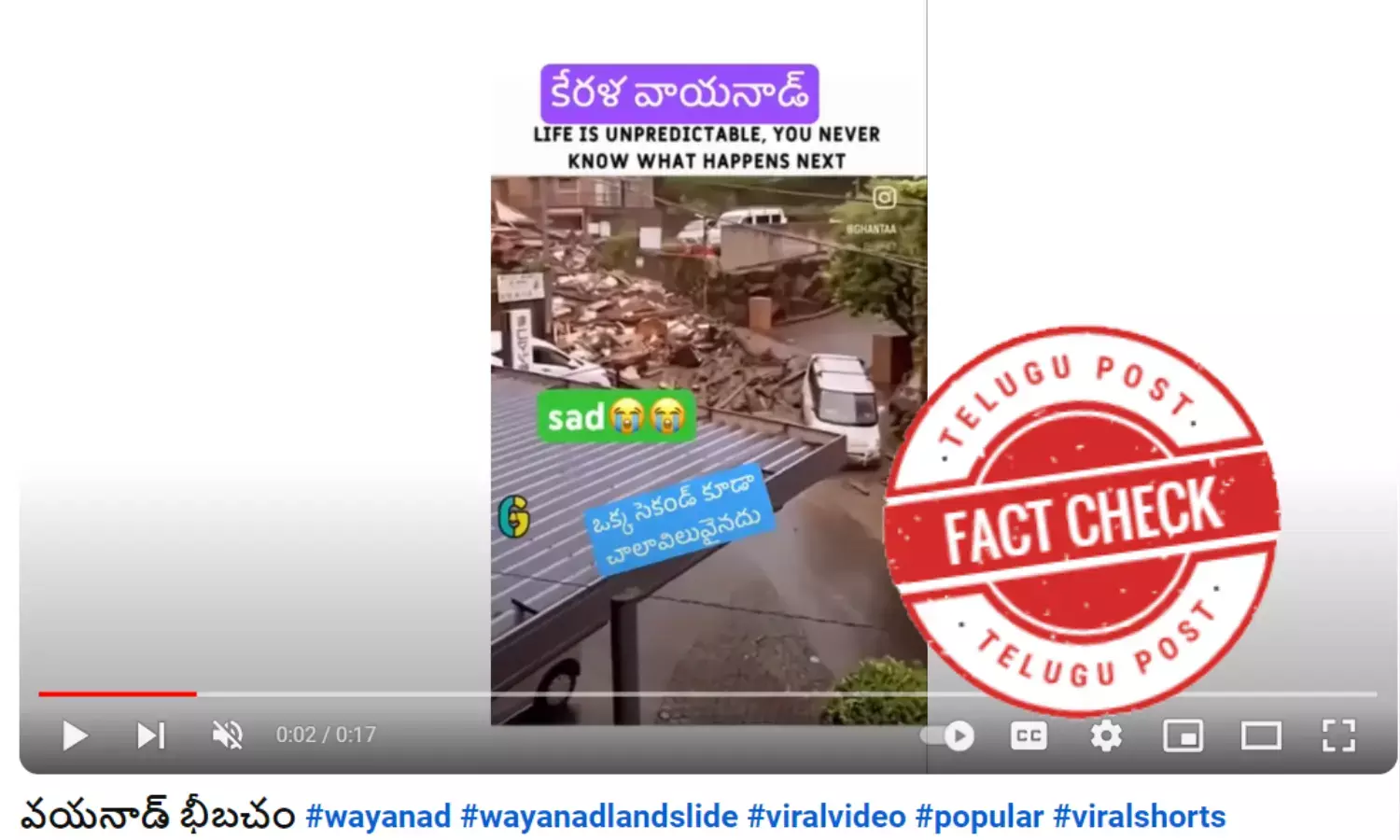 వైరల్ అవుతున్న వాదనలో ఎలాంటి నిజం లేదు. ఈ వీడియో కేరళలోని వాయనాడ్లో కొండచరియలు విరిగిపడిన ఘటనకు సంబంధించింది కాదు.