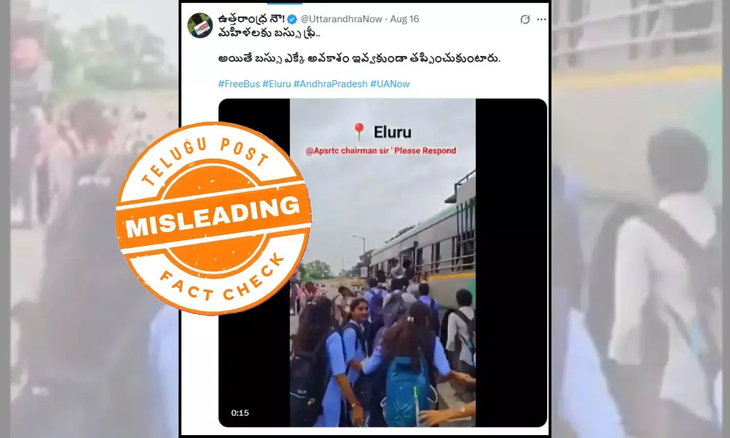 వైరల్ అవుతున్న ఆర్టీసీ బస్సు వీడియో కొత్తది కాదు. ఇది 2025 జూలై 25న ఎలూరు ప్రాంతంలోని ఒక కాలేజీ వద్ద చోటుచేసుకున్న సమస్యకు సంబంధించినది. ఈ వీడియోకి ఆంధ్రప్రదేశ్లో అమలు అవుతున్న ‘స్త్రీ శక్తి’ ఉచిత బస్ స్కీమ్తో ఎటువంటి సంబంధం లేదు. కనుక, ఈ క్లెయిమ్ తప్పుదారి పట్టిస్తొంది