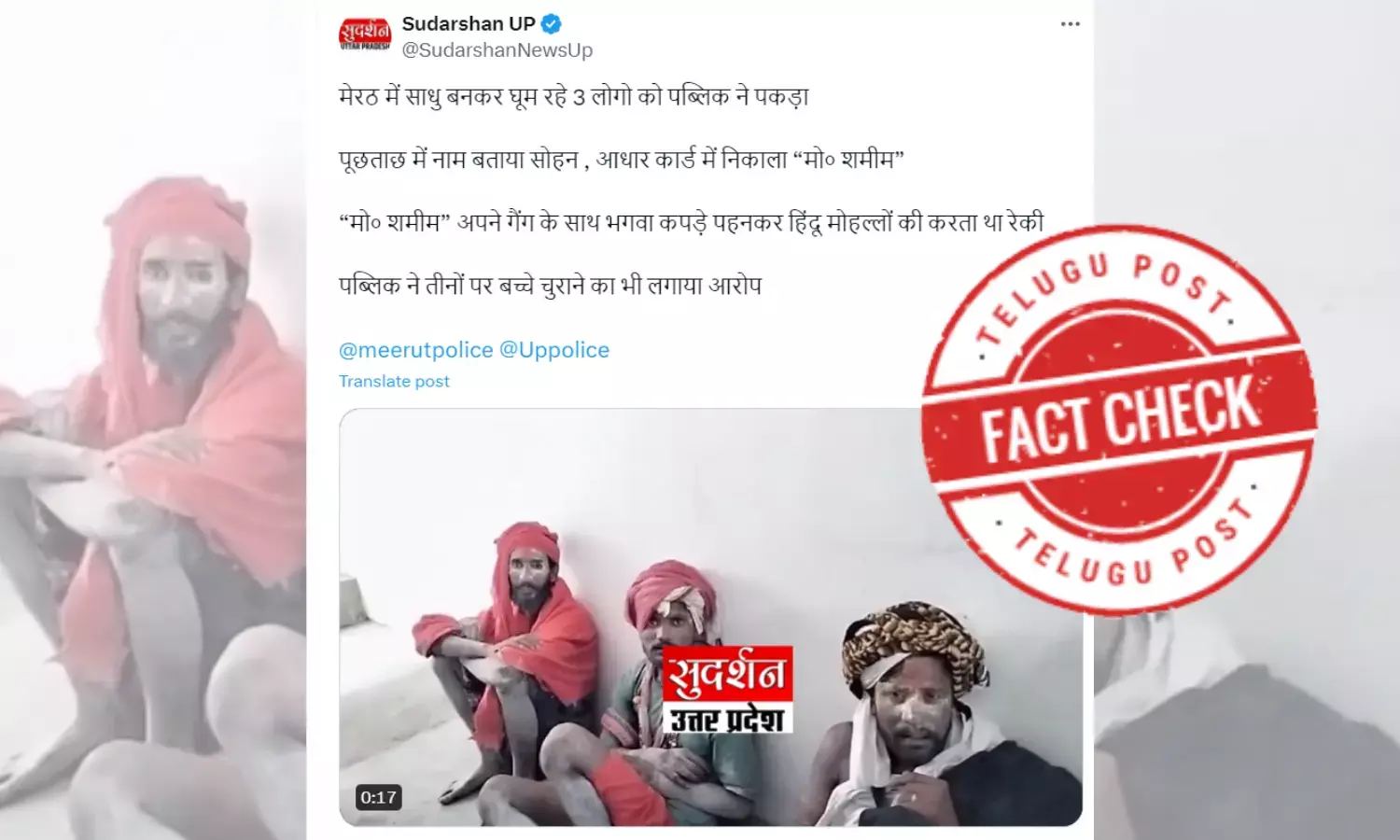 The police arrested three men for allegedly beating Sadhus on suspicion of them being child kidnappers. This incident of assault has come to light in Meerut, Uttar Pradesh, where 3 people dressed as sadhus were accused of child theft. Social media users, especially X (Twitter) users, are sharing the video with the claim that the three men dressed as Sadhus are Muslims.