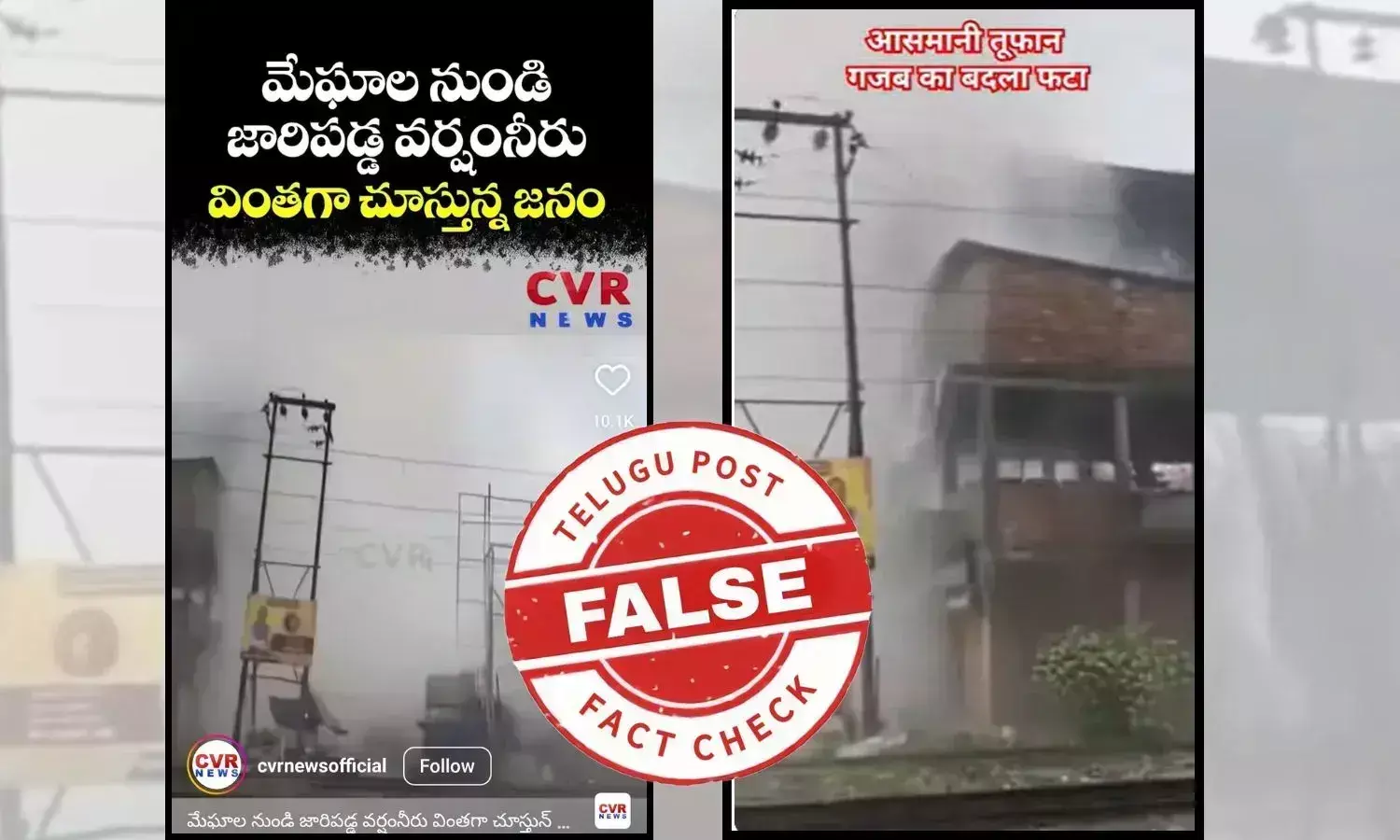 ఇంతలో, కోల్కతాలో మేఘావృతాన్ని చూపిస్తుందని చెబుతూ, రైల్వే లైన్ దగ్గర భారీగా నీరు ఎగసిపడుతున్నట్లు చూపించే వీడియో సోషల్ మీడియాలో వైరల్ అవుతూ ఉంది. “మేఘాల నుండి జారిపడ్డ వర్షంనీరు వింతగా చూస్తున్న జనం | Viral Video | CVR NEWS SHORTS” అంటూ వీడియోను పోస్టు చేశారు.
