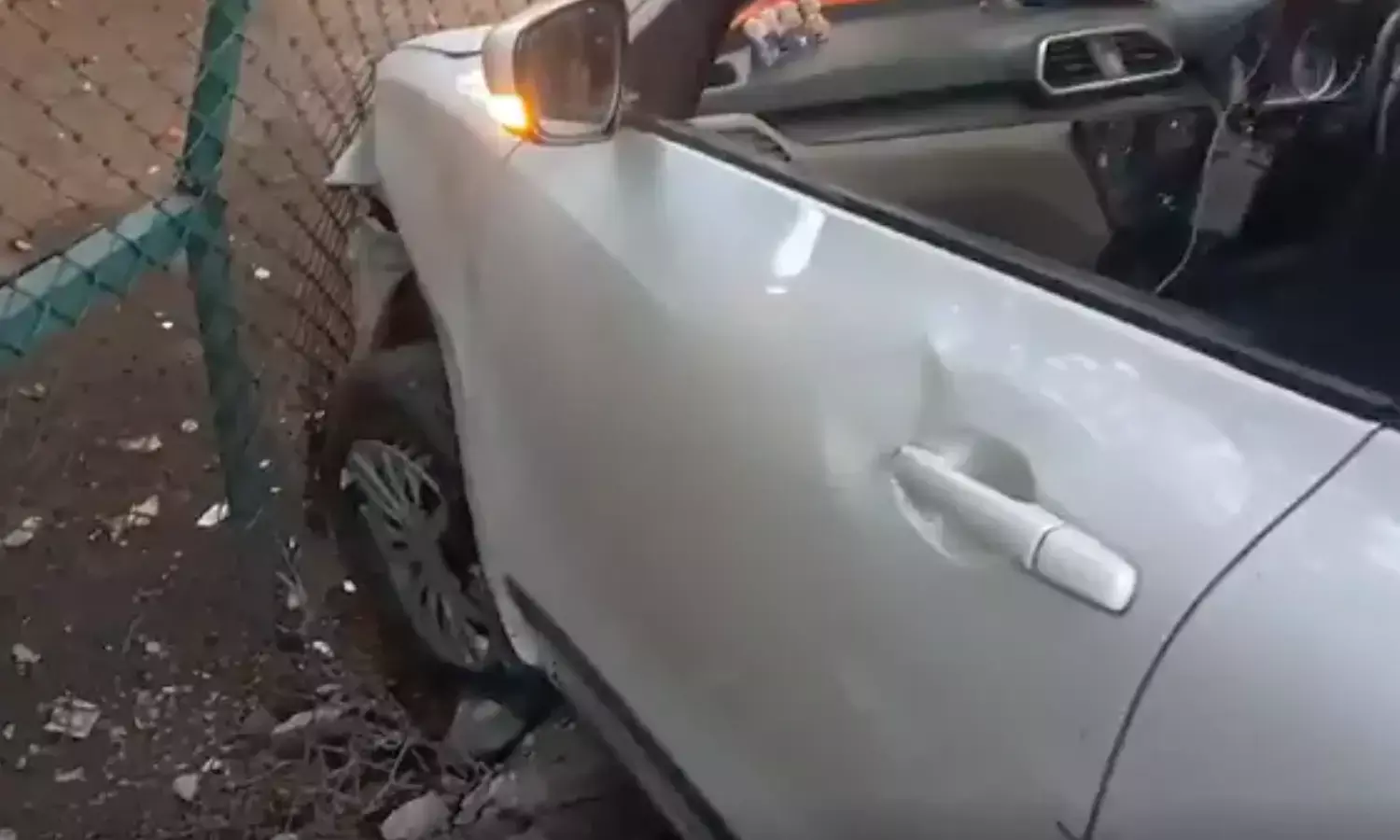 సినీనటుడు బాలకృష్ణ ఇంటి దగ్గర ఫెన్సింగ్ను ఢీకొట్టిన కారు ప్రమాదానికి గురయింది