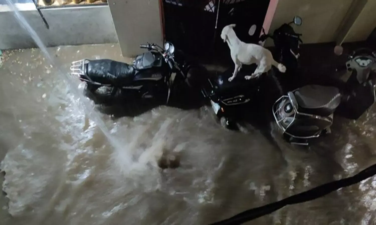 హైదరాబాద్లో భారీ వర్షం కురిసింది. దీంతో రోడ్లపై వరద నీరు చేరింది. పలు కాలనీలు వరదనీటితో నిండిపోయాయి. దీంతో రాకపోకలకు అంతరాయం ఏర్పడింది. వరద నీటిలో బైక్, ఆటోలు కొట్టుకుపోతున్న దృశ్యాలు సోషల్ మీడియాలో వైరల్ అవుతున్నాయి. ఇంకొద్ది రోజుల పాటూ తెలంగాణ లోని పలు ప్రాంతాల్లో తేలికపాటి నుంచి మోస్తారు వర్షాలు, ఉరుములు మెరుపులతో కూడిన వర్షాలు కురిసే అవకాశం ఉందని హైదరాబాద్ వాతవరణ శాఖ వెల్లడించింది. మెదక్ ,కామారెడ్డి, సిద్దిపేట్, సంగారెడ్డి, రంగారెడ్డి, హైదరాబాద్ ,మేడ్చల్, వికారాబాద్ ,నాగర్ కర్నూల్, మహబూబ్నగర్, కామారెడ్డి, సిరిసిల్ల, గద్వాల్ జిల్లాలోని పలు ప్రాంతాల్లో భారీ వర్షాలు కురిసే అవకాశం ఉందని అధికారులు తెలిపారు.