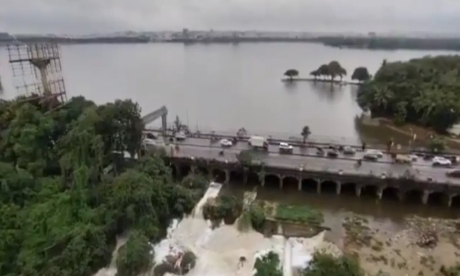 గత ఐదు రోజుల నుంచి హైదరాబాద్ నగరంతో పాటు చుట్టుపక్కల ప్రాంతాల్లో భారీ వర్షాలు కురుస్తుండటంతో హుస్సేన్ సాగర్ నిండింది. ఈ నెల ప్రారంభం నుంచి ఇప్పటి వరకూ హైదరాబాద్ లో 68 శాతం వర్షపాతం నమోదయిందని అధికారులు చెబుతున్నారు. ఈరోజు, రేపు కూడా భారీ వర్షాలు కురుస్తాయని సూచించడంతో జీహెచ్ఎంసీ అధికారులు అప్రమత్తమై లోతట్టు ప్రాంతాల ప్రజలు సురక్షిత ప్రాంతాలకు వెళ్లాలని సూచిస్తున్నారు.